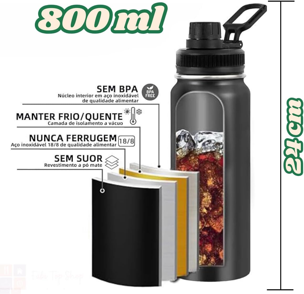 CAPACIDADE GENEROSA: Com capacidade de 800ml, essa garrafa é ideal para levar sua bebida favorita para qualquer lugar.