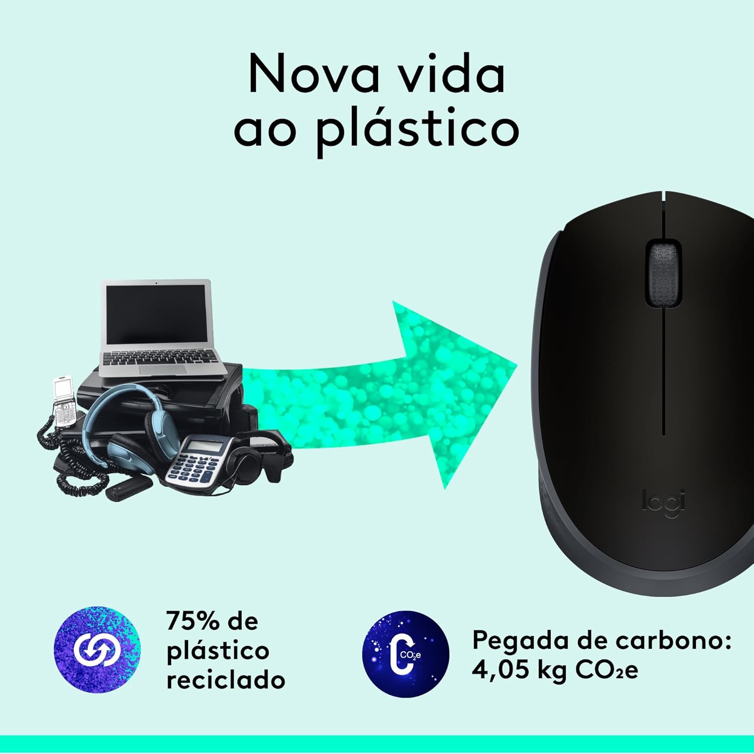 Mouse sem fio Logitech M170 com Design Ambidestro Compacto, Conexão USB e Pilha Inclusa – Preto