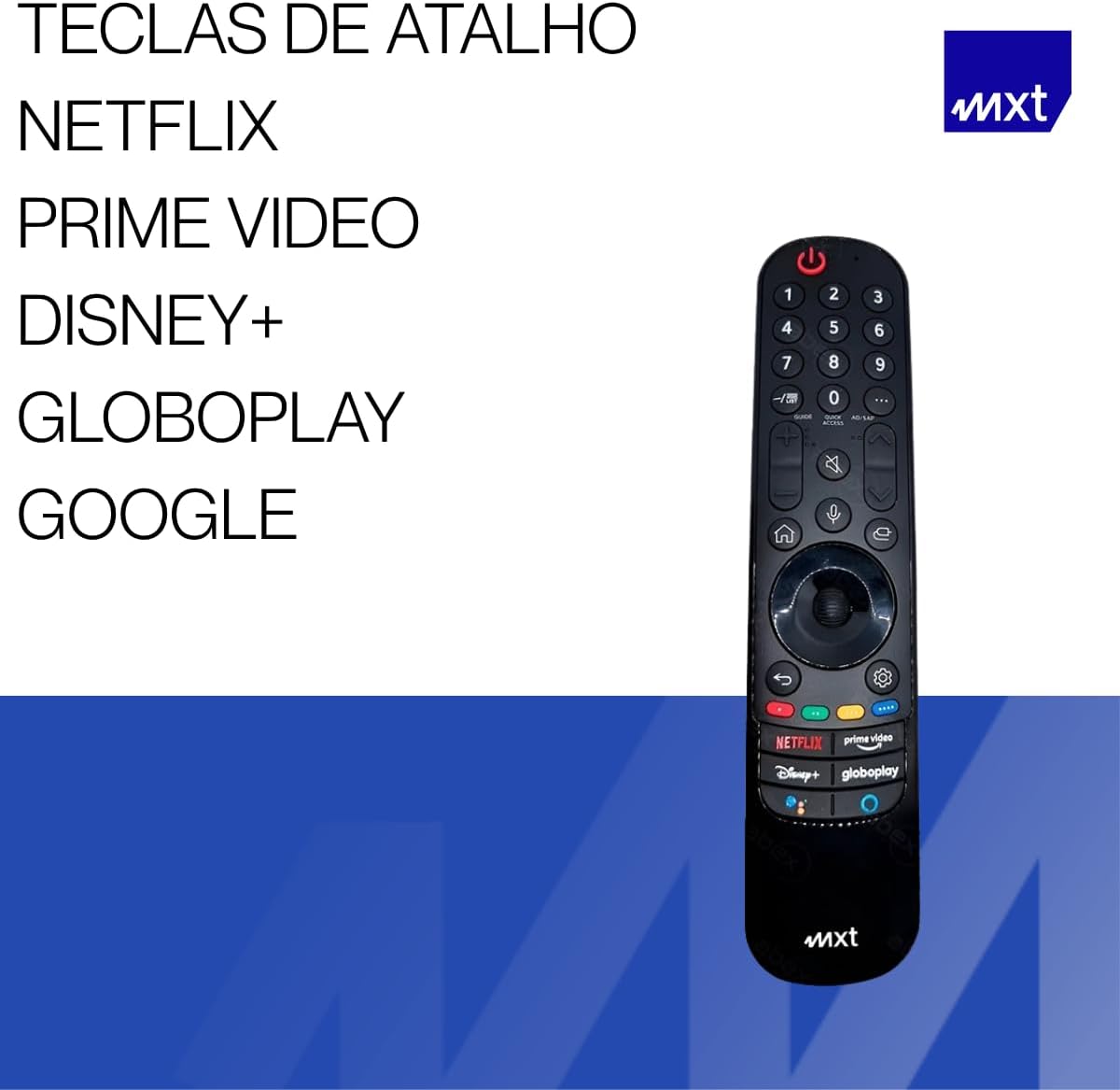 Prime Video: MXT Controle Smart Magic com Comando de Voz, Teclas de Atalho para Netflix, Prime Video, Disney+, Globoplay, Compatível com TV LG