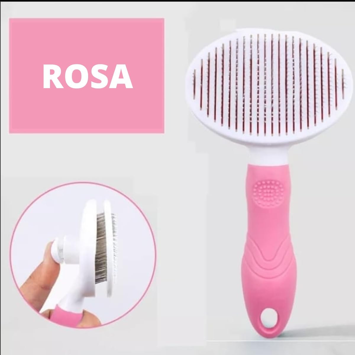 Rasqueadeira Escova Tira Pelos Pet Automática Cachorro e Gatos Remove Pelos Autolimpante (ROSA)