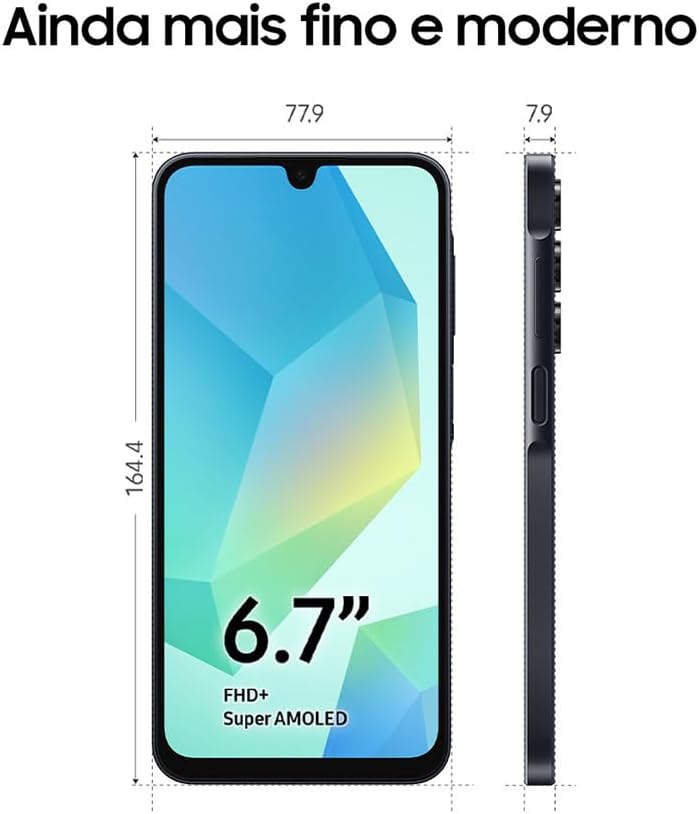 Celular Samsung Galaxy A16, Tela Ampla, Super AMOLED de 6.7″ e 90Hz, 128GB, 4GB, Processador Helio G99, Câmera Tripla Traseira de até 50MP, Selfie de 13 MP, Bateria de 5.000mAh, Dual Chip, Knox Vault, NFC, Samsung Wallet Conheça o novo Galaxy A16, o smartphone que foi feito para durar. Com certificação IP54, até 6 atualizações de Android e Segurança e uma tela Super AMOLED FHD+ de 6.7”, o Galaxy A16 permite que você mergulhe no seu conteúdo favorito com cores vívidas e uma tela ampla. Experimente um desempenho poderoso com o processador Helio G99, 128GB de armazenamento, 4GB de memória RAM e 4GB adicionais de RAM Plus. Tenha em mãos uma carteira inteligente no seu novo Galaxy A16, para pagamentos rápidos e seguros por aproximação com NFC. A Samsung Wallet permite que você organize todos os seus itens essenciais em um único aplicativo. Carregue rápido e fique conectado por muito mais tempo, aproveitando todos os seus conteúdos sem se preocupar. O Galaxy A16 conta com uma bateria de 5.000 mAh, de longa duração e que suporta o Carregamento Super-Rápido de até 25W. O smartphone ainda conta com Câmera Tripla de múltiplas possibilidades, sendo sua câmera principal de até 50MP com Ultra Wide e a Selfie de 13MP, permitindo a captura de memórias vivas e realistas. Com seu design único com um acabamento mais fino e elegante, o novo Galaxy A16 é o smartphone que possui diversas funcionalidades, sendo versátil e compatível com seu estilo. Ele ainda possui 3 opções de cores para você escolher a que mais combina com o seu estilo: Cinza, Preto ou Verde Claro. Sua proteção ainda é aprimorada com Samsung Knox Vault, garantindo que dados confidenciais e sigilosos permaneçam seguros, e, com Cadeado Galaxy, protegendo os seus dados e acessos a aplicativos por terceiros. E com o aplicativo SmartSwitch, você transfere de forma fácil e prática o conteúdo do seu celular anterior (fotos, contatos, eventos do calendário, notas, configurações do dispositivo e muito mais) para o seu novo Galaxy A16. *Acesse: www.cadeadogalaxy.com.br