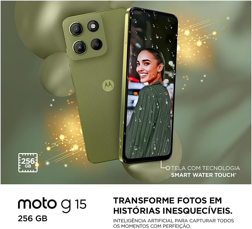 Smartphone Motorola Moto g15-256GB 12GB (4GB RAM+8GB Ram Boost) e Camera 50MP com AI e Night Vision Bateria de 5200 mAh Tela FHD+ 6.7″ com Superbrilho NFC – Grafite