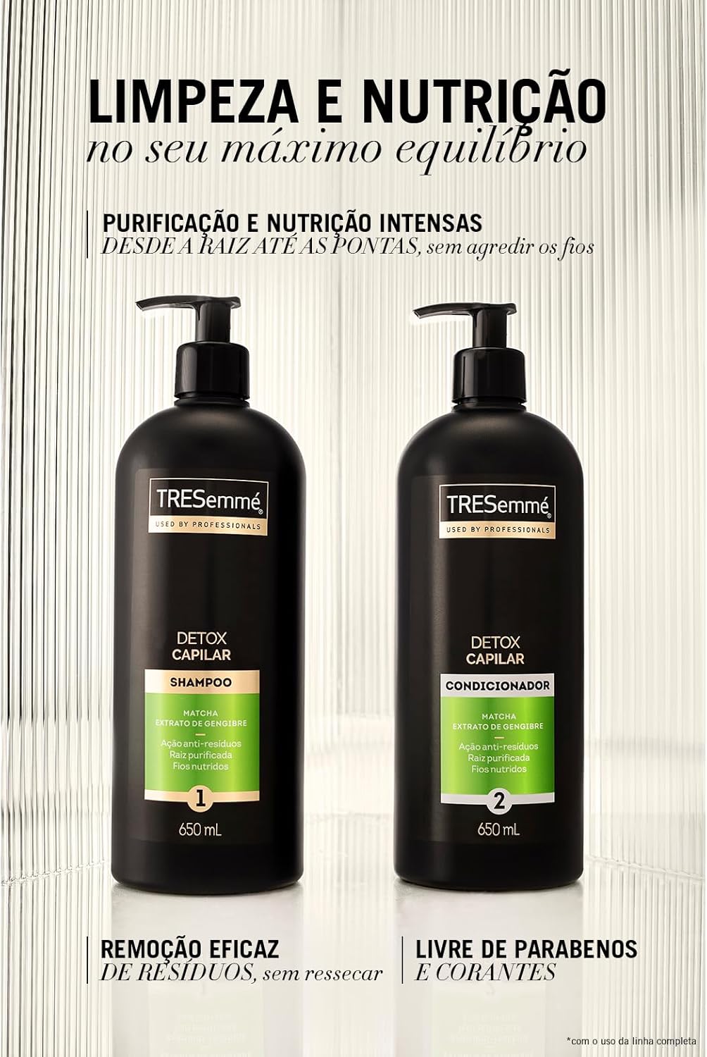 Shampoo TRESemmé Detox Capilar 650 ML – Limpeza Profunda e Nutrição para seus Cabelos. Experimente o poder revitalizante do Shampoo TRESemmé Detox Capilar, especialmente formulado para proporcionar uma limpeza profunda e purificante, deixando seus cabelos livres de resíduos desde a raiz. Enriquecido com matcha e extrato de gengibre, esse shampoo combina ingredientes naturais para uma experiência de cuidado capilar incomparável.