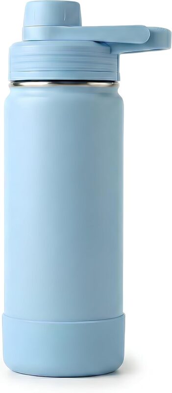 Garrafa Térmica 800 ml Base Emborrachada Antiderrapante, Parede Dupla Inox 304, Mantém Gelada por 24h – (Azul Claro)