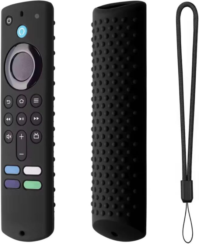 Capa Para controle Fire-TV-Stick 4K/3rd Gen | Estojo de controle remoto de silicone macio com cordão. Capa protetora à prova de choque para Fire-TV-Stick 4k PRETA