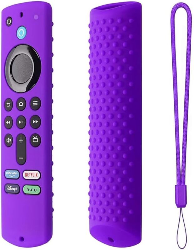 Capa Para controle Fire-TV-Stick 4K/3rd Gen | Estojo de controle remoto de silicone macio com cordão. Capa protetora para controle Fire-TV-Stick 4k – 3ª Geração – (ROXA)