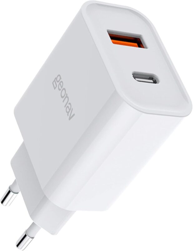 Geonav Carregador Universal Ultra Rápido Duo, 1 X USB-C Power Delivery 20W, 1 X USB Quick Charge 18W, CH20PDQC, Branco